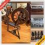 WHAT IS IN THIS AUCTION? This online auction features antique spinning wheel, TV, desks & chairs, teacup/saucer sets, upright piano, patio furniture, sleeper sofa, decorative shoe collection, jewelry armoire, fitness gear, exercise equipment, ga