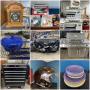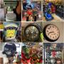 Online Moving Auction Lots begin closing @ 6p on June 24 Mid-Century items, clock collection, scales, vintage fans, tools, Roseville, vintage kitchen items, signs, Navy items, Cushman colonial card table with chairs, and MUCH more!
