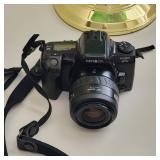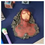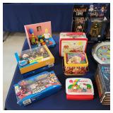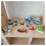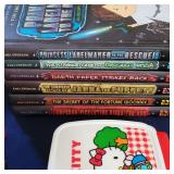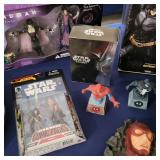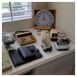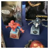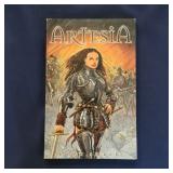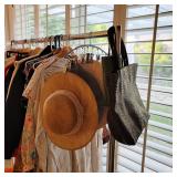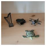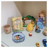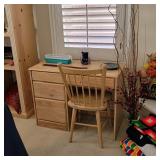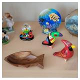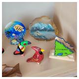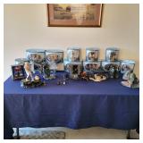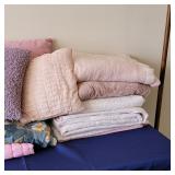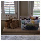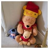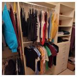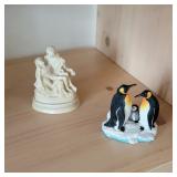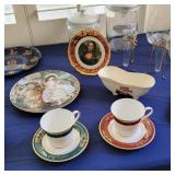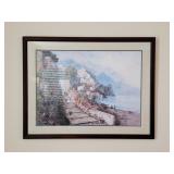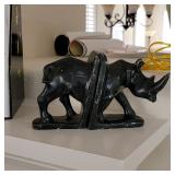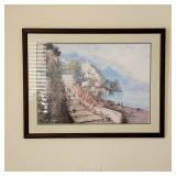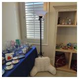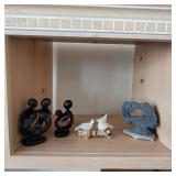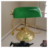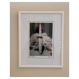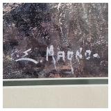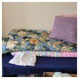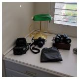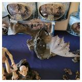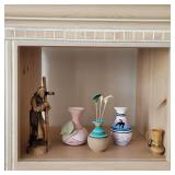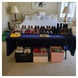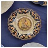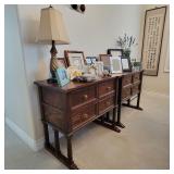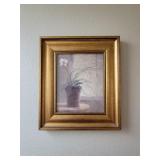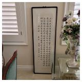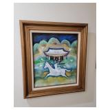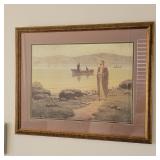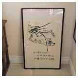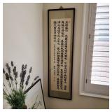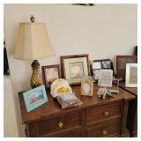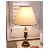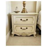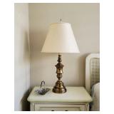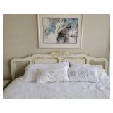 Master bedroom set, King bed, nightstands, vintage brass lamps, signed Asian artwork, bench