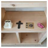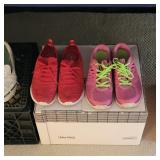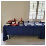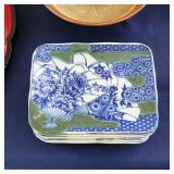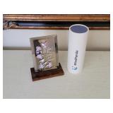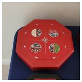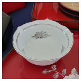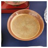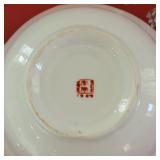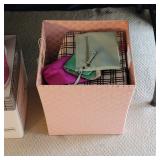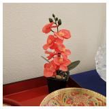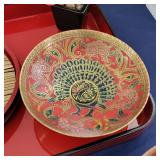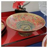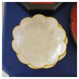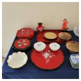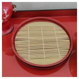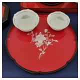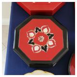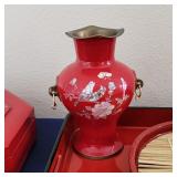 Vintage Asian red enamel vase and box with inlaid mother of pearl