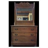 Vtg Oak Dresser With Mirror And Drawers39x 19×76