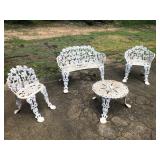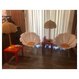 Pair Grosfilex Daisy Chairs MCM garden armchairs model "Marguerite" in white resin and metallic tubu