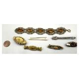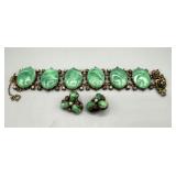 Lot # : 229 - 14k Carved Floral Jadeite Brooch