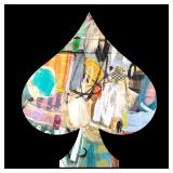 R. JONES SIGNED EMBELLISHED ABSTRACT GICLEE | “Hard Hats”. Embellished giclee on canvas. 60 x 40 in