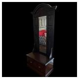 Vtg Wooden Hall Tree W/Mirror 33��x17.5��x72.5��