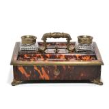 A FINE NAT SHERMAN BURLWOOD INLAY BOX HUMIDOR | Brass hardware, interior marked "Nat Sherman / New Y
