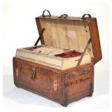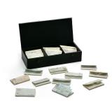 ANTIQUE FOLDING STEREOSCOPIC VIEWER & SLIDES | One large lens and two eyepieces set into a richly fi