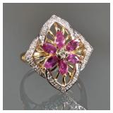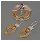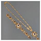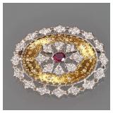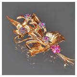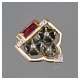 (2pc) TUTTI-FRUTTI FLORAL GEMSTONE & 18K GOLD DEMI PARURE |Including a floral bouquet-form brooch, h