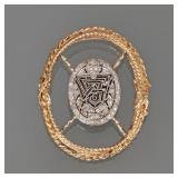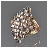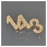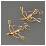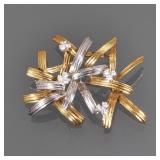 DIAMOND, SAPPHIRE, & 14K GOLD RIBBON FORM PIN | Textured yellow gold ribbon-form pin set with 2 stat