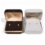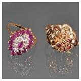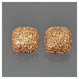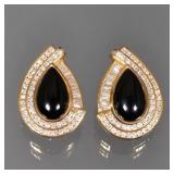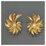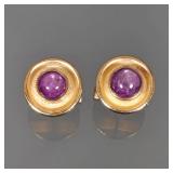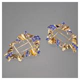 PAIR SAPPHIRE & 18K GOLD EARRINGS | Midcentury modern, starburst yellow gold earrings, each designed