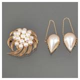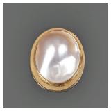MABE PEARL 14K GOLD PIN | Designed as a flower-form brooch, center-set with a round mabe pearl (appr