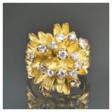 ITALIAN 18K GOLD CONVERTIBLE BROOCH BRACELET | Floral motif 18k yellow gold bracelet designed with f