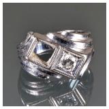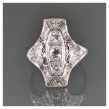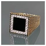 ART DECO DIAMOND & ONYX 14K WHITE GOLD RING | 14k white gold ring inlaid with black onyx and set wit