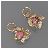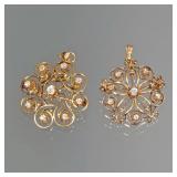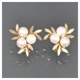 PAIR BAROQUE PEARL & 14K GOLD EARRINGS | Each earring designed as a cluster of 4 baroque pearls, wit