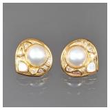 14K GOLD & MABE PEARL DRAGON PIN/ENHANCER | Designed as a yellow gold dragon sitting atop a large, r