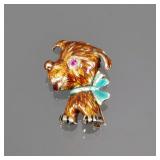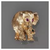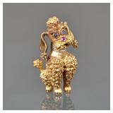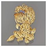 LESAL TURQUOISE, CARNELIAN & 18K GOLD DUCK PIN | Yellow gold duck-form pin, set with an oval turquoi