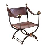 EARLY 1900'S CAST IRON & LEATHER SWIVEL CHAIR | Polished cast iron, on swiveling round base; seat he