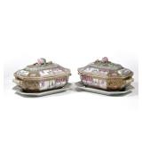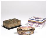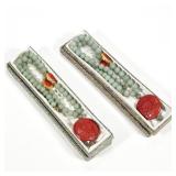 (2pc) FRENCH ELIE BLEU MAPLE INLAY AMBOYNA BURL CIGAR MATCHBOX HOLDERS | One reddish, the other yell