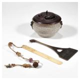 JAPANESE BRONZE MIXED METALS OVERLAY CENSER | Designed as a bronze tripod censer decorated with bird