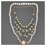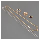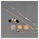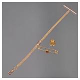 (2pc) 14K GOLD JEWELRY WITH ENAMEL AND SILVER CLASPS | The bracelet made from two strands of yellow