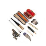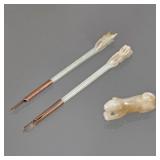(2pc) PAIR OF ANTIQUE HORN HANDLED CIGAR CUTTER ALPINE HIKING WALKING STICKS | The Larger one marked