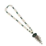 ANTIQUE ART DECO DIAMOND & NATURAL PEARL NECKLACE | C. 1900-1920, probably J.E. Caldwell, Philadelph