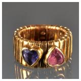 ITALIAN RUBY & 18k GOLD BRACELET |Hard yellow gold bangle bracelet with hinged opening, designed as