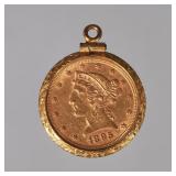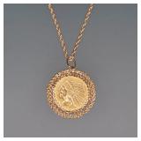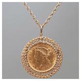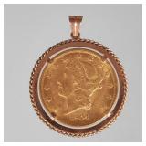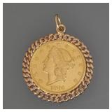 1908 US $20 GOLD COIN PENDANT | 1908 twenty dollar American Walking Liberty gold coin in an unmarked