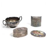 A FINE GERMAN ART NOUVEAU 800 SILVER CENTERPIECE | Having a faceted bowl with repousse rim of viney