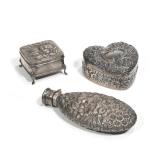 ENGLISH STERLING SILVER HINGED LIDDED BOX | Vintage English hinged box with two wood lined compartme