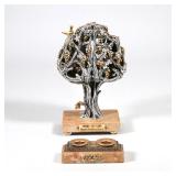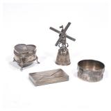 (2pc) ENGLISH SILVERPLATE TABLE ITEMS; CROSSED RIFLES LETTER HOLDER, RIDING CAP INKWELL | Toast or L
