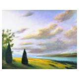 GENE SPECK LANDSCAPE PAINTING | Blue Mountains Oil 20x16 in. Sight Title plaque on bottom of frame S