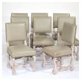 (10pc) 19TH CENTURY FRENCH LOUIS XV STYLE DINING CHAIRS, ROBIN'S EGG LEATHER | Including two armchai