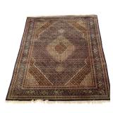 VERY FINE SCULPTED FLORAL TABRIZ RUG | central medallion with four vases full of flowers on a red gr