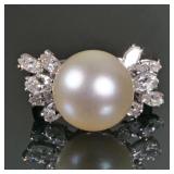PEARL & DIAMOND 18K GOLD RING | Cocktail ring designed as a large mabe pearl in a bold yellow gold s