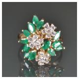 EMERALD, DIAMOND, & 14K WHITE GOLD COCKTAIL RING | A bold cocktail ring designed with an emerald cut