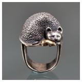 THEO FENNEL STERLING SILVER 'BEGGING DOG' ASHTRAY, LONDON | A round ashtray with wide rim, raised ce