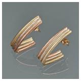 14K GOLD DROP EARRINGS | Post earrings each suspending 5 textured gold interlocking links, unmarked