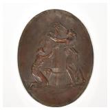 CHINESE ARCHAIC BRONZE SHIELD ON WOOD STAND | A round archaic bronze shield on a conforming carved w