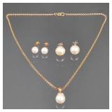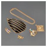 (5pc) 14K GOLD, JET, DIAMOND, & PEARL MEN'S DRESSING SET | Including a pair of yellow gold and jet (