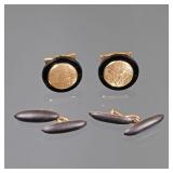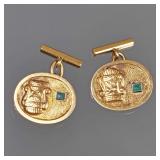 ATLAS ONYX & 14K GOLD FIGURAL CUFFLINKS | A pair of 14k yellow gold cuff links depicting the Greek g