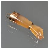 A VERY FINE VICTORIAN CARVED HAND PENDANT NECKLACE | Designed as a carved onyx hand with extended th