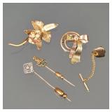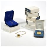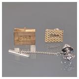 (3pc) 14K GOLD TIE CLIPS | Including a brushed 14k white gold tie clip set with a single round white