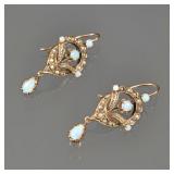 PAIR OPAL CABOCHON & 14K GOLD EARRINGS | Post back earrings, each mounted with an oval opal approx.