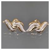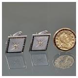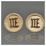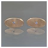 PAIR 14K GOLD & DIAMOND CUFFLINKS | Round cuff links with melee diamonds set in an "M" (or "W") mono