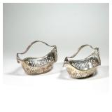 PAIR STERLING SILVER COMPOTES | Matching compotes with raised designs on pedestals and rims. Marked