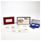 UNITED STATES CONSTITUTION COINS SET | A four-coin set in a mahogany presentation box, including 2 1