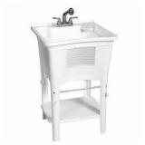Glacier Bay 24.1 in. L x 24.1 in. W x 36.7 in. H Laundry Sink / Utility Sink Work Center in White with Pull-Out Faucet in Chrome Customer Returns See Pictures