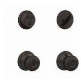 Lot of Schlage Georgian Aged Bronze Single Cylinder Deadbolt and Keyed Entry Door Knob Combo Pack Customer Returns See Pictures
