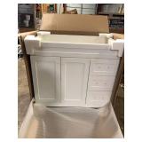 Home Decorators Collection Thornbriar 36 in. W x 22 in. D x 34 in. H Right Side Drawers Vanity Cabinet without Top in Polar White Customer Returns See Pictures